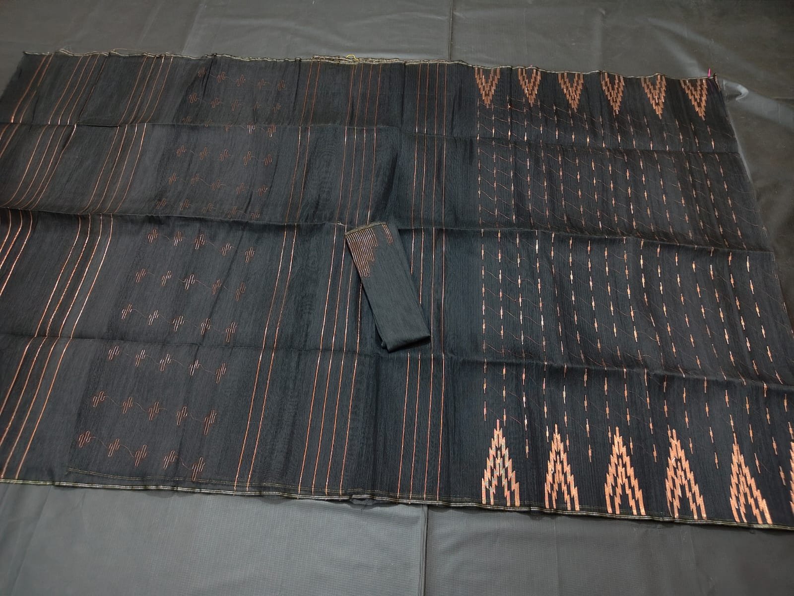 Add a touch of traditional grace to your wardrobe with our Black Color Jamdani Saree with Blouse Piece, a beautiful handwoven masterpiece from Bangladesh. Crafted with precision using 40 count cotton yarn, this saree ensures a soft, lightweight, and breathable texture — perfect for both festive occasions and everyday elegance.