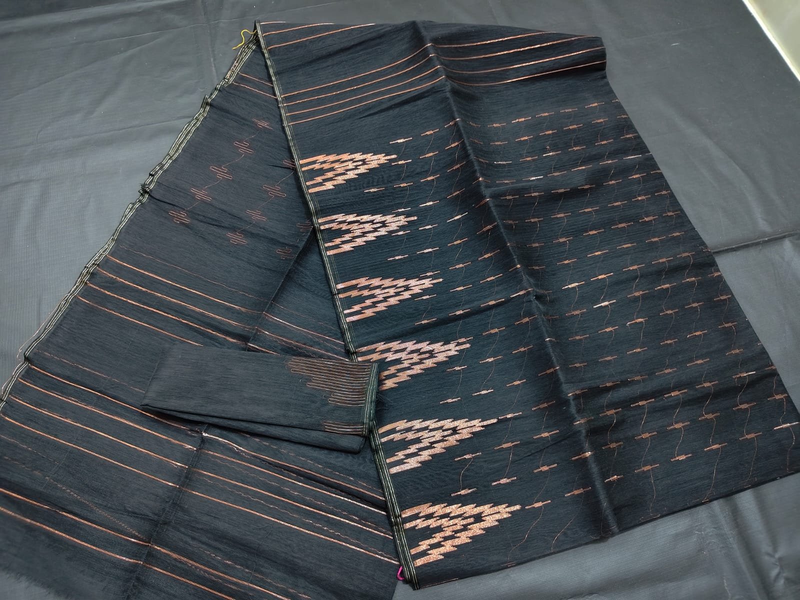 Experience timeless elegance with our Black Color Jamdani Saree with Blouse Piece, a stunning blend of tradition and craftsmanship. Woven by skilled Bangladeshi artisans, this saree features intricate handwoven motifs that reflect the rich heritage of Jamdani weaving.